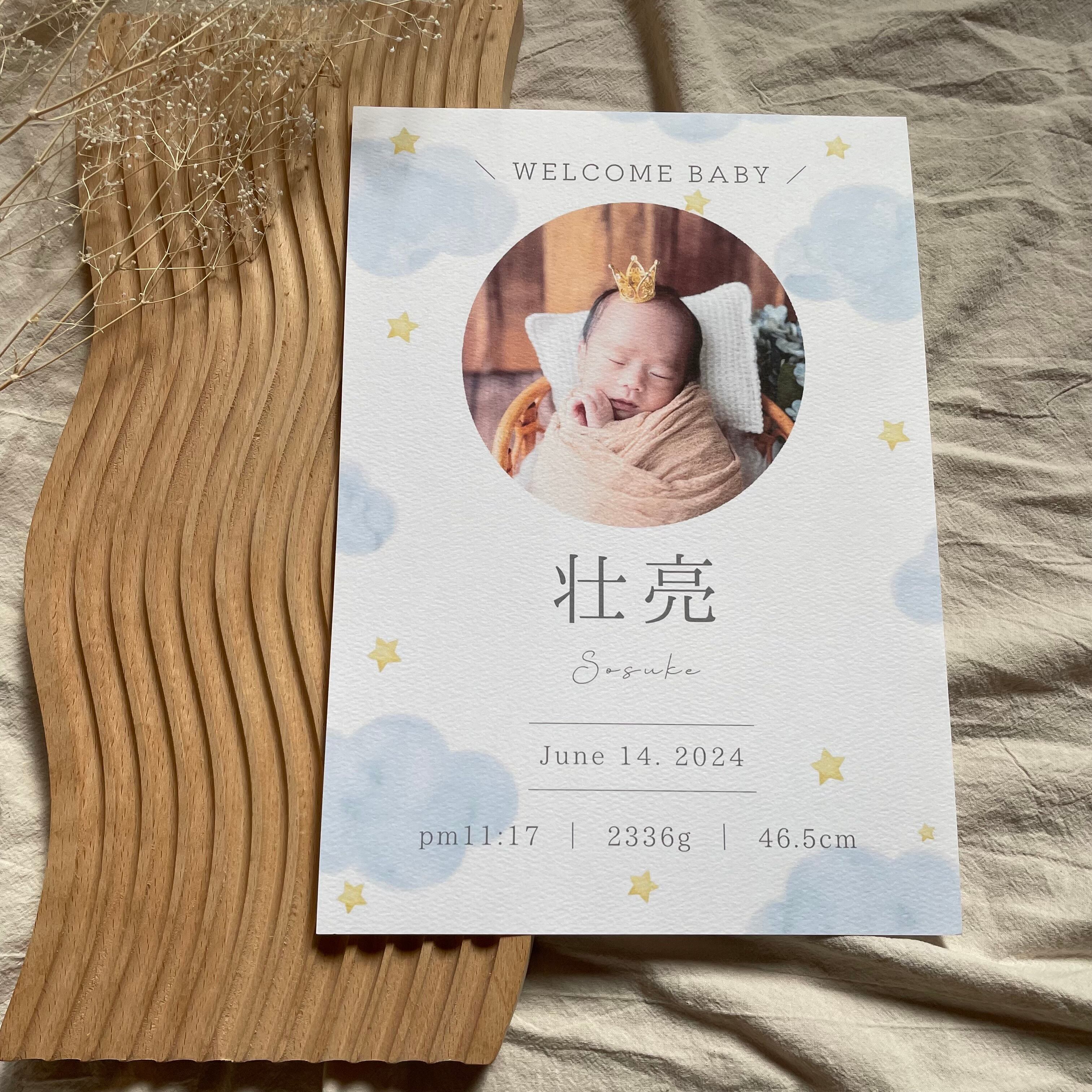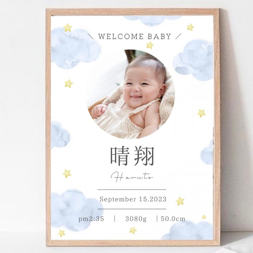 雲の写真入り命名書⭐︎ブルー